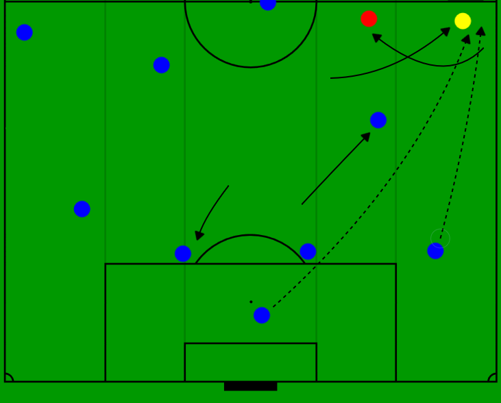 中央制限とロングパスアタックでサイドに流れて起点構築。